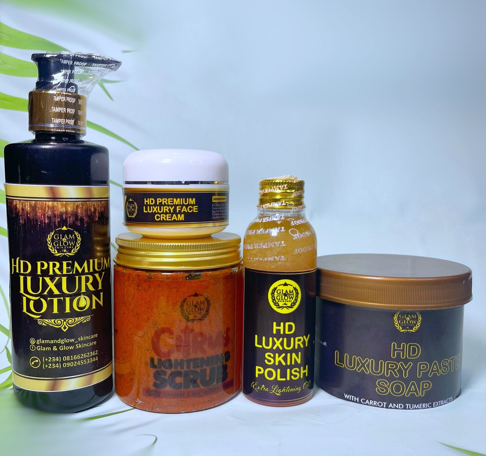 Shake the HD luxury skin polish oil and apply all over your body or mix on your palm with your HD premium luxury lotion